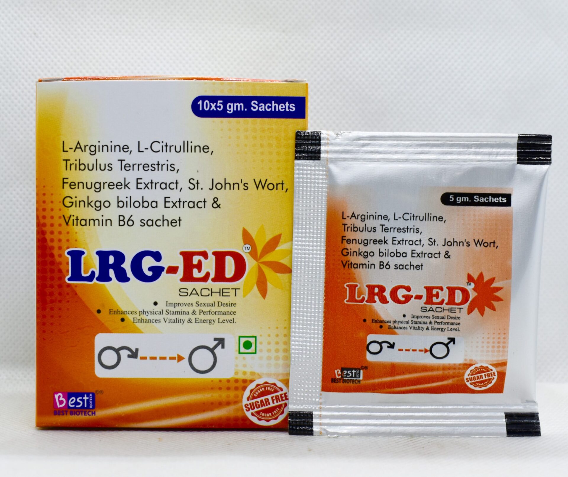 Fenugreek extract 300mg+L-Arginine 2,500 mg +L-Citrulline 500mg+Tribulus Terrestris 300mg+Ginkgo Biloba extract(leaf)(24% of Ginkgo flavone glycosides+St.John’s wort(aerial parts)Hypericum perforatum (0.3% hypericin) 300 mg+Mucuna Pruriens 75 mg+& 6% Terpene Lactones+Vit B6- 1.2 mg sugar free sachets